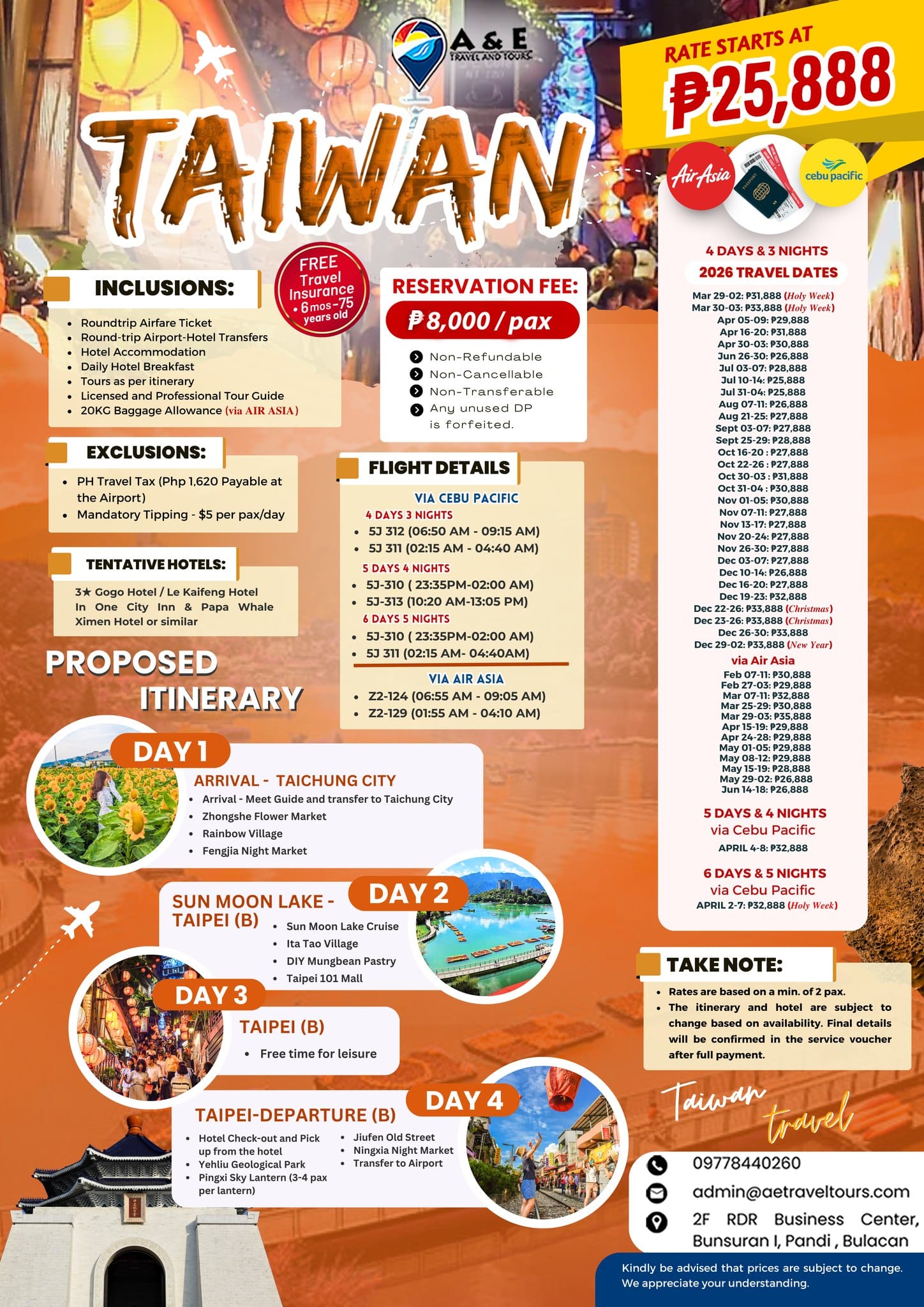 Experience the vibrant culture, delicious street food, colorful night markets, and breathtaking views of Taiwan — all in one perfectly planned trip.